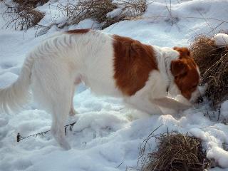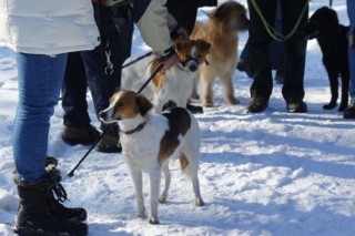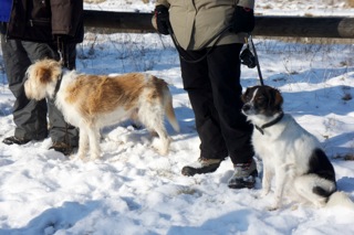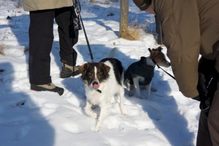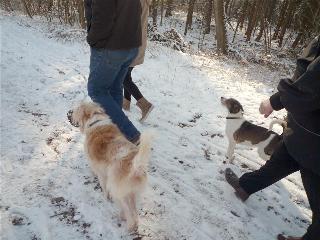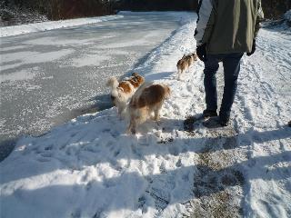 Wieder einmal (heute am 10.02.2013) hat sich eine kleine Kromirunde zum Spaziergang getroffen, oder besser gesagt eine Männerrunde, wenigstens bei den Hunden. Die Leinenhalter freuten sich auf einen kleinen Plausch und die Rüden mussten erst einmal ihre Rangordnung ausfechten. Gismo stutzte einen Junghund und dabei wurde er von Crümel auf Abstand gehalten, dass er Ayla nicht zu Nahe kommt. Und wer war alles dabei??
