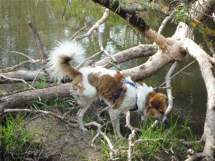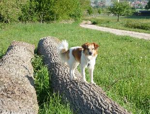 06.05.2011 Nanchmal möchte mein Frauchen, dass ich auf Baumstämme herum klettern soll, dann tu ich ihr halt den Gefallen. Kann ich doch ganz gut!! Oder????