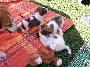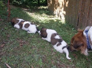 09.07.2011 Meine Schwester Abby hat mit "Ariko vom fünfzinnigen Hochzeitsturm" Hochzeit gefeiert und aus dieser Verpaarung sind kleine Welpen entstanden. Seit die Zwerge auf der Welt sind bin ich jetzt stolzer Onkel, ja genau. Als Onkel muss man sich die Babys schon einmal anschauen, deshalb besuchten wir Abby. Was die Erwachsenen immer nur an den Kleinen finden???? Die sind ja sooo süß und lieb und kuschelig, als ob die immer so bleiben. Ich finde sie etwas zu klein und trotzdem hatten alle nur Augen für die Welpen. Aber dass ich meine Schwester wieder sehen durfte fand ich dann doch ganz Klasse. Auch wenn sie mich erst einmal kräftig zurechtgewiesen hat und ich das Haus sofort wieder verlassen habe, überredete mich mein Frauchen doch mit rein zu kommen. Von diesem sehr schönen Nachmittag haben wir ein paar Fotos mitgebracht. Seht selbst, sind die nicht süß!!!!!!!!