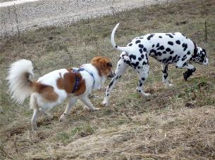 Aber meine Freundin "Alaska vom Rosenbach" (vorne) und Bella (linkes Foto) dürfen nicht fehlen.